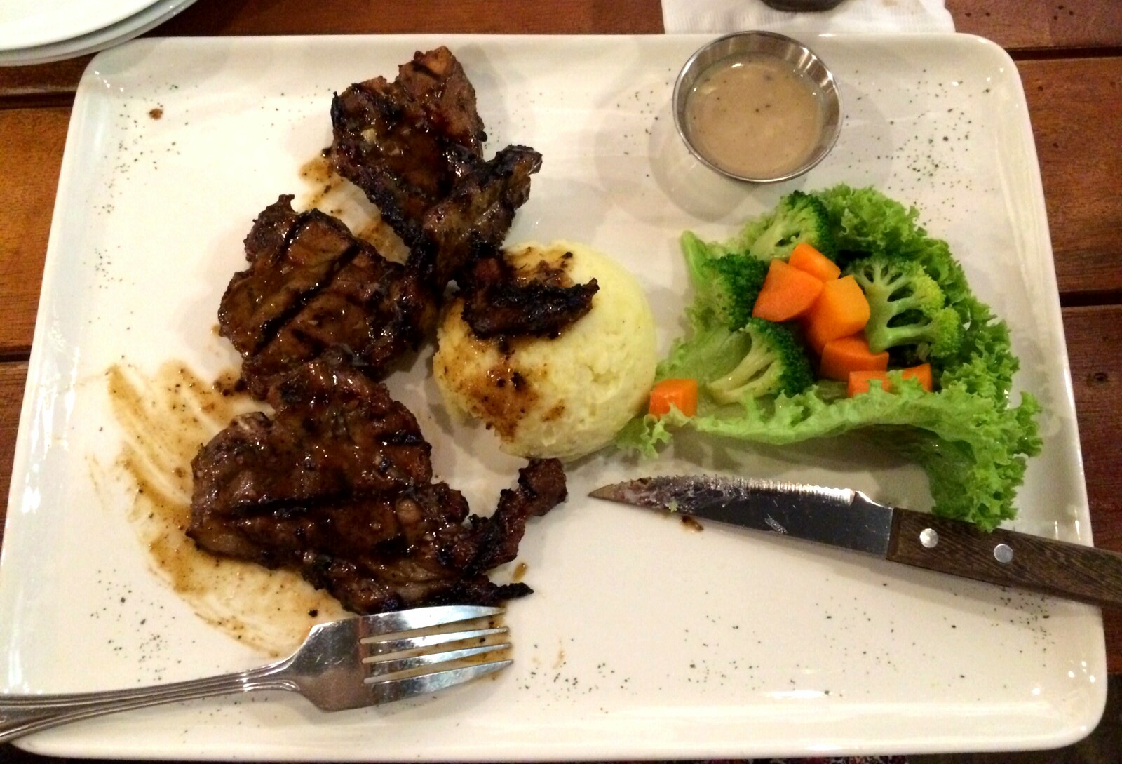 It was soft, melts in your mouth and sweet yet salty yet smoky. But the second time, it wasn't so great as the first time I had lamb and steak, but it was still quite good, kind of charred, but alright. The mash potatoes, the option can be made to switched it to rice, was kind of cold, I think it's because they prepared before hand, and just served it once they grilled the steak and lamb. Its not a large portion but I finished my meal and was quite full, probably cause I have a small appetite. Haha, wasn't expecting that were you? You probably thought I was one of those people who eats like a mountain of food, but sadly I am not. I get full easily which is why the food getting into my mouth needs to be worth it. They served it wit some mushroom sauce, but to be honest the steak and lamb was already marinated enough and there was no need for it. It was also quite cold.